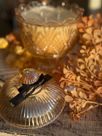 Do you love the look of the Old Glassware. But would rather a candle that has a lid. Then the Nostalgic glassware is the range for you. New, but with all the grace and look of a bygone era. This piece is a grand Lady. She is Miss Rosalie. Statement Candles deserve to be named...